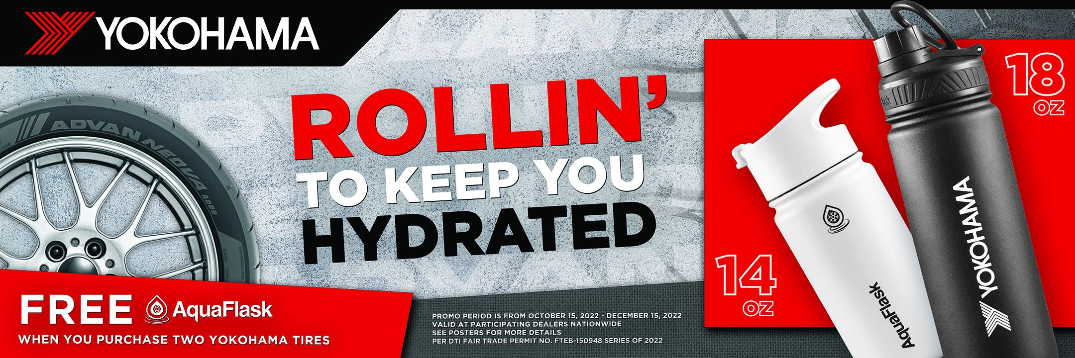 Free Aqua Flask for every purchase of two(2) YOKOHAMA tires.