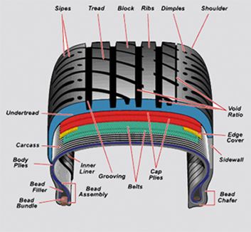 The amount of open space in the tread. A low void ratio means more rubber is in contact with the road. A high void ratio increases the ability to drain water. Whether a tire has a high or low void ratio depends on the tire's intended use.